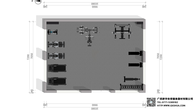 此方案要求面积小于70m²,适用于企事业单位、酒店会所、楼盘社区、学校等健身场所,能满足10-15人同时健身使用。(方案根据场地空间大小、预算、产品需求等进行配置仅为启发性参考)
