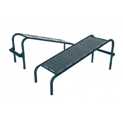 身体背部依托在腹肌练习板上,踝关节置于横杆下,双手交叉于脑后,起坐身体向前弯,然后返回原位为一次