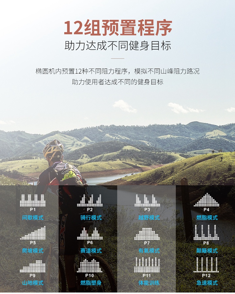 椭圆机是一种主动运动方式,能预防、降低、缓解颈椎病、肩周炎等疼痛。而且,在使用室内健身器材-椭圆机时,因为膝盖不是着力点,所以对膝关节的冲击力也很小,很大程度降低了给膝盖造成损伤的可能性,安全性大大提升,更为重要的是,室内健身器材-椭圆机运动强度不大,适合体重过重的肥胖人群使用。它既适用于大众人群进行锻炼,更适合不同人群,还适合康复训练、产后人群恢复训练等。